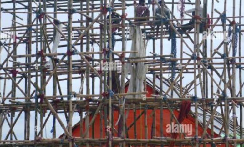 पंडाल निर्माण को लेकर झारखंड से आए कारीगर दे रहे हैं मूर्त रूप