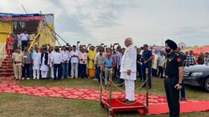 जिसके बाद पुलिसकर्मियों ने गॉड ऑफ ऑनर दी जिसके बाद राज्यपाल मंचासीन हुए वही उन्होंने मंच पर दीप प्रज्वलित कर कार्यक्रम का सुभारम्भ की राज्यपाल के सम्मान में स्वागत गान हुई साथ ही राज्यपाल को लारी ग्रामबासियो द्वारा अंग बस्त्र देकर समानित किया। इस मौके पर राज्यपाल ने कार्यक्रम को संबोधित करते हुए कहा कि बिहार व केंद्र की सरकार ने विकास की नई इबादत लिखी हम लोग जब अपने राज्य से दूसरे प्रदेश में जाते हैं तो बिहारी कहलाते हैं लेकिन जैसे ही बिहार वापस आते हैं तो जात-पात में बट जाते हैं पहले जहां लोगों को सड़क की समस्या से जूझना पड़ता था आने-जाने में काफी परेशानी होती थी आज लोगों को आने जाने का सुगम व्यवस्था हो रही है हालांकि और व्यवस्था करने की आवश्यकता है