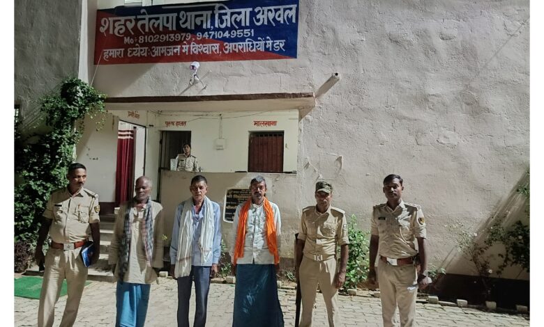 शहरतेलपा (अरवल)। शहरतेलपा थाना पुलिस ने फरार चल रहे पाँच वारंटियों को गिरफ्तार कर माननीय न्यायालय में पेश किया है। यह कार्रवाई थाना प्रभारी कन्हैया कुमार के नेतृत्व में की गई।पुलिस टीम ने भोगापुर, महावीरगंज और अवगिला क्षेत्रों में छापेमारी कर सभी वारंटियों को विधिवत गिरफ्तार किया।